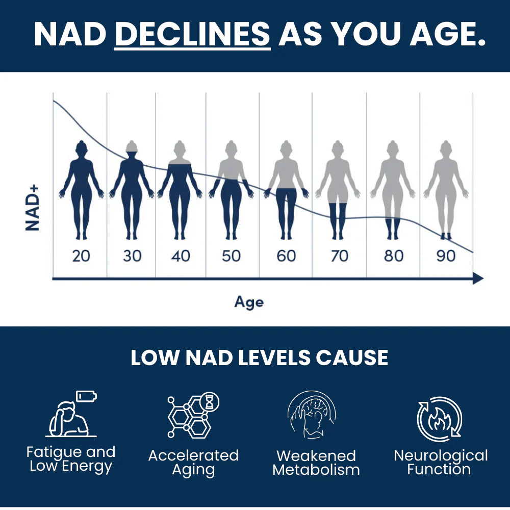 Forget caffeine crashes and synthetic boosters — Pure NMN Powder supports your energy from the inside out. As we age, our cells naturally slow down, leading to fatigue, brain fog, and slower recovery. Pure NMN restores your body’s NAD⁺ levels to fuel clean, lasting energy — no jitters, no pills, no side effects. Easy to mix, fast-absorbing, and designed to help you feel focused, restored, and balanced every day.